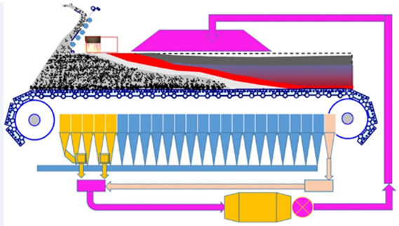 多管除塵器的作用是將煙氣中的顆粒物控制在合適的水平,減少循環風機和后續管路系統的磨損。多管除塵器收集的灰塵通過氣力輸送裝置送至主電除塵器粉塵倉。